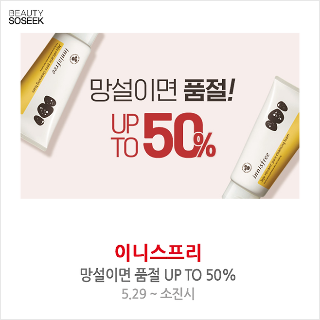 이니스프리 망설이면 품절 UP TO 50%