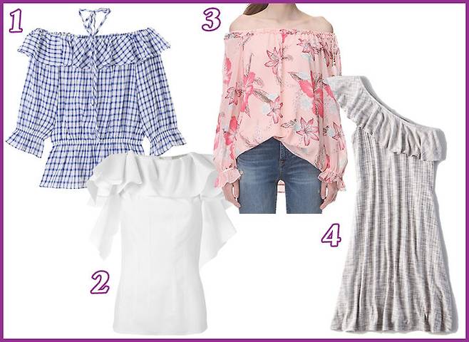 보통 오프숄더 아이템은 러플과 함께인 것 같네요