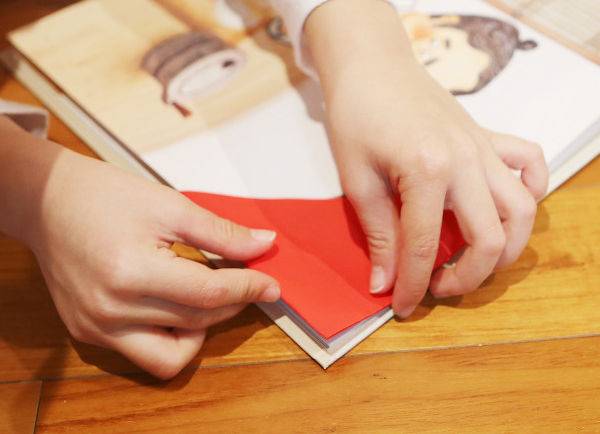 만드는 방법은 초간단합니다. 우선 색종이를 반으로 접고, 다시 반으로 접은 후 한쪽면에 색칠을 합니다. 어느 정도 소근육이 발달한 아이라면 자기 스스로도 자신만의 서표를 잘 만들 수 있습니다. 자신이 직접 만든 서표일 수록 아이가 더욱 애착을 가집니다.