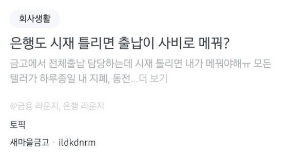 ![출처: [블라인드] "은행도 시재 틀리면 출납이 사비로 메꿔?"](https://img2.daumcdn.net/thumb/R658x0.q70/?fname=https://t1.daumcdn.net/news/202105/24/blind/20210524031553217ikgf.jpg)