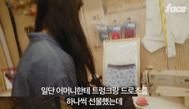 여성용 드로즈(사각팬티의 한 종류)라니..! 나도 처음 들어봐. 직접 만들고 나서 어머니께 선물을 드렸다는데...