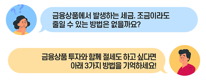 세금을 이야기할 때 빼놓을 수 없는 것, 바로 절세방법입니다. 다음 3가지 방법은 금융상품에 투자할 때 꼭 기억해야 할 절세방법입니다.