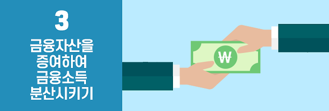 금융자산에서 금융소득이 발생합니다. 금융자산을 분산시킨다면 금융소득 또한 분산이 가능하기 때문에 절세가 가능합니다.