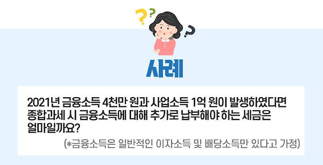 금융소득 종합과세자가 되면 얼마의 세금을 더 내야 하는지 구체적인 사례를 통해 알아볼까요?