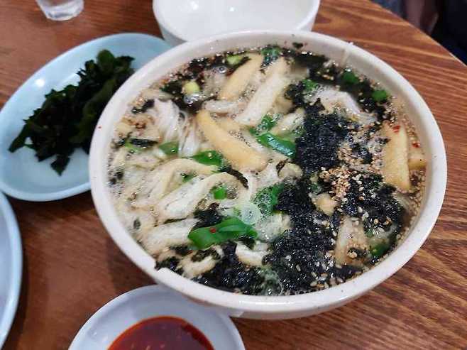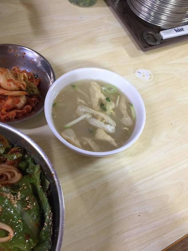 어묵국물은 오래 끓인 느낌과 함께 완전 깊진 않지만 상당히 두꺼운 맛이 났다. 맨첨엔 젓국맛을 비슷하게 느꼈는데 점점 국물이 식으니 질좋고 저렴한 재료를 노하우와 기술로 제대로 국물을 내신것이 아닐까 생각했다. 국물이 식어도 계속 숟가락이 갔다.
