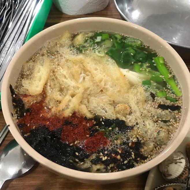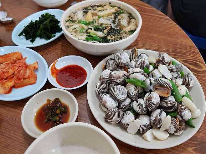 대단히 기본에 충실한 멸치국수. 국물이 특히 맛있다. 특별할 것 없는 꼬막 싱싱하게 다 벌어져서 나온다. 꼬막에 뿌려져있는 고추와 마늘을 곁들여 먹으면 더욱 맛있다. 기본찬으로 나오는 삶은 미역, 김치가 참 맛있다. 이차 삼차로 와서 간단히 마시기 좋은 곳이다