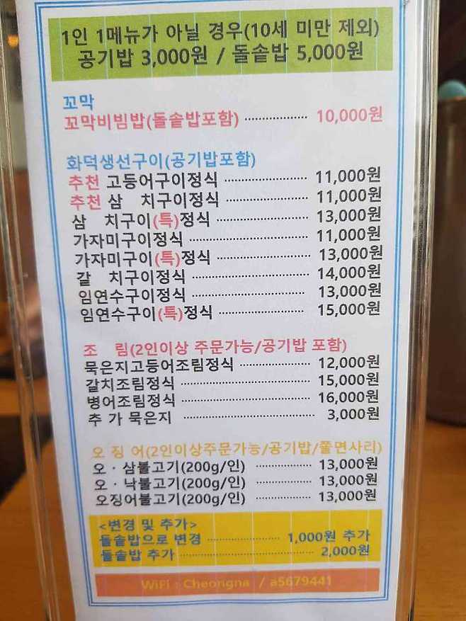 또한 생선 크기가 너무커서 실컷 먹어도 남을정도네요. 그래서 대부분 사람들은 2인 주문시 생선 한마리 주문과 공기밥 또는 돌솥밥만 추가해서 식사를 합니다. 저는 몰라서 1인 1생선 했더니 결국 남기고 말았습니다.