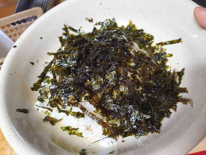 뜨거운 쌀밥에 그냥 넣어 먹어도 되지만 여러가지 반찬들을 같이 넣고 비벼먹는 것을 추천한다.