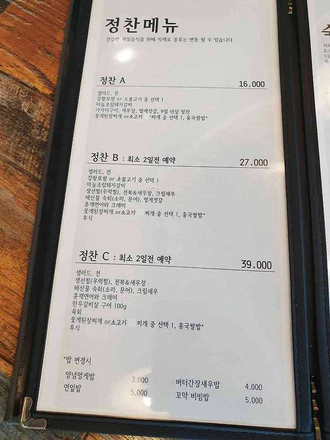 반찬 그 어느하나 손이 안가는 것들이 없었고 같이나오는 꽃게된장찌개(소고기 된장찌개 둘 중 하나 선택할수 있음) 또한 너무나 만족.