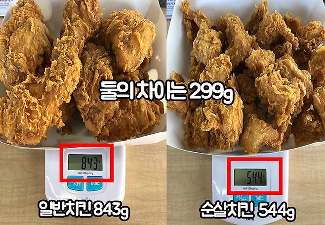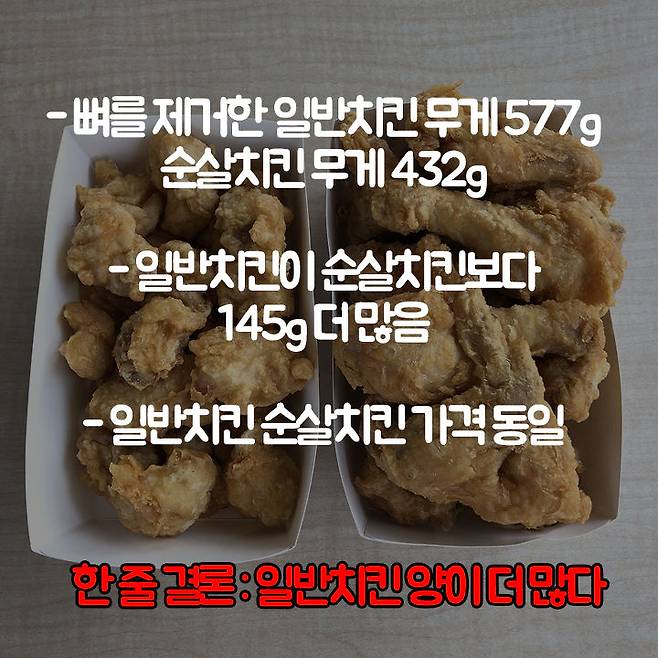 두 브랜드 모두 일반치킨 양이 더 많았지만