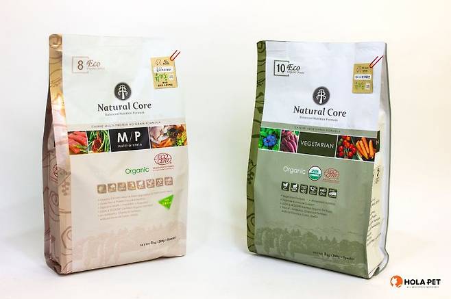 일단 네츄럴코어의 모든 사료는 유기농 원재료를 쓴대요! 또 육류는 가수분해해 사용해서 알러지를 예방하고 소화가 잘 되게 한다나요~ 유해물질이 전혀 들어있지 않는 건 물론이고, 미국 USDA와 유럽의 ECOCERT로부터 유기농 인증도 받은 사료랍니다!
