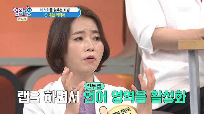 전두엽의 언어 영역을 활성화합니다.