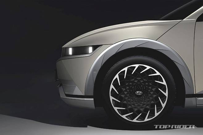 아이오닉5의 전면부는 현대차 최초로 상단부 전체를 감싸는 크램쉘 보닛이 적용됐다. 측면부에는 현대차 전기차의 역대 최대 직경인 20인치 공기 역학 휠이 탑재된다. 특히 상위 트림 혹은 옵션으로 오토 플러시 도어 핸들과 카메라 방식의 사이드 미러를 선택할 수 있다.