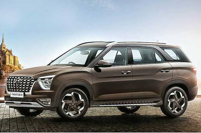 현대차는 알카자르를 8일(현지시간) 공개했다. 알카자르는 인도 전략형 모델이자 크레타를 기반으로 3열이 추가된 7인승 소형 SUV다. 알카자르의 휠베이스는 크레타와 비교해 150mm 더 길다. 원터치 슬라이딩 2열 시트, 서라운드 뷰, 파노라마 선루프 등이 적용됐다.