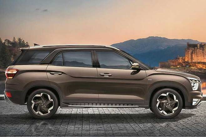알카자르의 휠베이스는 2760mm다. 크레타와 비교해 150mm 더 길다. 알카자르는 3열 레구름을 위해 리어 오버행을 늘렸다. 알카자르의 전면부에는 현대차 최신 SUV 패밀리룩이 입혀졌다. 대형 라디에이터 그릴과 분할형 헤드램프, 주간주행등이 팰리세이드와 유사하다.