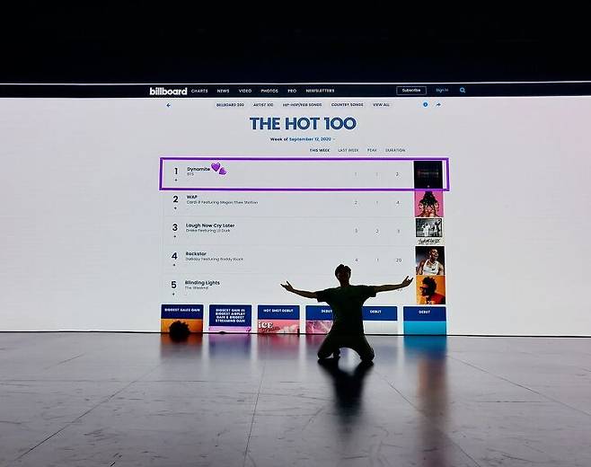 다 아는 얘기를 잠깐 하겠다. 방탄소년단이 2020년 9월에 처음 1위를 차지한 빌보드 싱글 차트는 음반 및 음원 판매량, 유튜브 등 주요 온라인 채널 스트리밍 횟수, 라디오 방송 횟수까지 총 세 항목을 까다롭게 종합해서 집계한다. 방탄소년단은 판매량과 스트리밍 순위에서는 계속 높은 기록을 세워왔지만, 라디오의 벽에 막혀 오랫동안 싱글 차트 1위에 오르지 못했다.