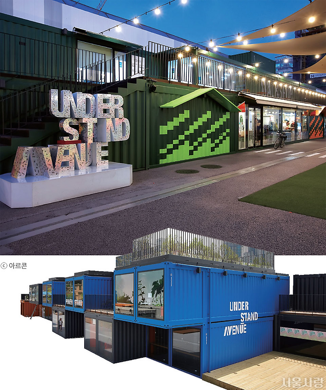 2016년, 민관의 상생 협력 및 사회 공헌 프로젝트로 탄생한 ‘언더스탠드에비뉴’는 창조적 공익 문화 공간이다. 신분당선 서울숲역 3번 출구로 나오면 빌딩 사이로 각양각색의 색과 높낮이를 지닌 116개의 컨테이너가 방문객의 눈길을 사로잡는다. 입구에서부터 자연스럽게 서울숲으로 이어지는 보행자 전용 길을 따라 양쪽에 자리한 매장들에서는 반려동물용품부터 업사이클 제품까지 다양한 분야의 스타트업 브랜드 제품을 만날 수 있다.