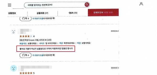 지난해 온라인 오픈마켓에서 '타미힐피거 베이직 맨투맨 티셔츠'를 구매한 한 소비자는 이런 후기를 남겼다.