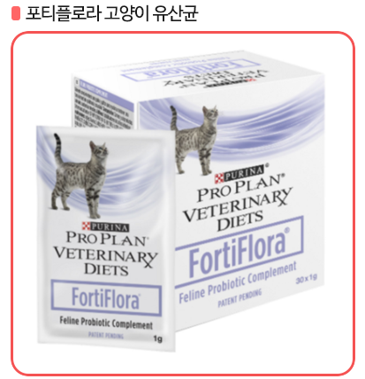 고양이 설사를 잡는데 효과적이라고 알려져 있는 포티플로라는 반려동물 전문 브랜드 퓨리나에서 나온 유산균이에요. 마이크로 캡슐 구조로 미생물을 안정시켜 유산균이 살아서 장까지 도달할 수 있게 해요. 면역 체계 강화에 도움을 주는 비타민 A, C, E가 함유되어 있어요. 다만 금액이 다소 비싸 아쉬워요.