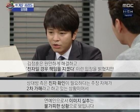 이 시기에 김정훈은 TV조선 '연애의 맛'을 통해 김진아와 커플 호흡을 보여줬던 상황이라서 논란이 더 됐다.