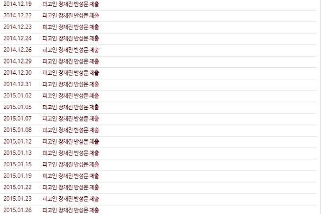 ◇ 김현정> 잠깐만요. 지금 유튜브와 레인보우로 보내드리고 있는 이게 장재진이 반성문 써낸 그 횟수 기록해 놓은 거예요?
