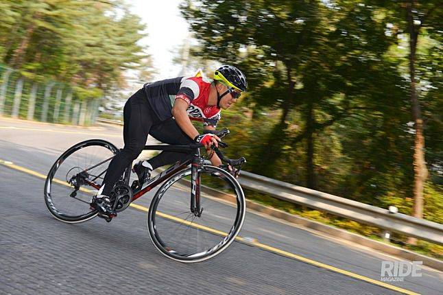 서울의 힐클라임 코스인 북악스카이웨이에서 울트라라이트의 시승을 시작했다. 두꺼운 근육으로 무장한 라이더와 가벼운 프레임의 대비, 그러나 이 둘은 환상적인 파트너다. 최소한의 손실만을 감수하며 페달링을 추진력으로 바꾸는 높은 강성과 함께 울트라라이트의 가벼운 무게는 가파른 언덕에서의 스프린트에 즉각적으로 반응해 앞으로 뛰쳐나간다.