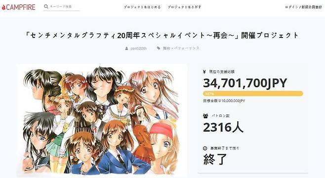 타이틀의 인기가 출시 전 기대만큼 높지 않았음에도 불구하고 '센티멘탈 그래피티'에 애정을 갖고 있는 팬들이 많았다는 증거라고도 할 수 있을 듯. 펀딩 성공 결과로 올해 초인 1월 19일에 드디어 20주년 행사가 개최되었으며 당시의 담당 성우(이미 은퇴한 분도 있었다)들도 참가해 자리를 빛내 주기도 했다.