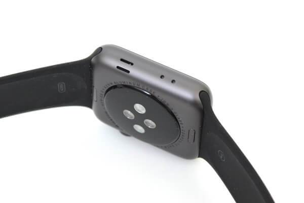 앞서 이야기한 바와 같이 애플 워치 시리즈3의 기본 디자인은 애플 워치 첫 모델부터 그대로 이어져 다른 점을 찾기가 어렵다. 본체의 오른편에 있는 디지털 크라운과 버튼도 그대로이고, 왼편에 있는 마이크와 스피커 구멍도 변함이 없다. 물론 후면에 있는 심박센서와 무선충전 단자도 마찬가지다.