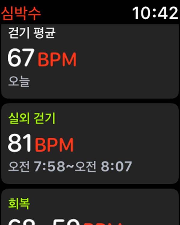 심박수 측정 기능도 강화되었는데, 하루 종일 사용자의 심박수를 측정해서 운동을 할 때와 회복기, 평균, 현재 등 세분화해서 측정한다. 또한 사용자의 움직임이 없는 상태에서 10분동안 120bpm 이상으로 심박수가 측정될 경우 심장 이상 상태로 인식해 즉각 알림을 보내는 기능도 갖추고 있어서 심장에 문제가 있는 사용자라면 조금은 걱정을 덜 수 있을 것으로 보인다.