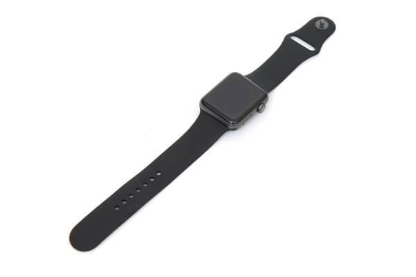 애플 워치는 그동안 스테인리스 스틸 케이스와 알루미늄 케이스 2종으로 출시되었는데, 애플 워치 시리즈3는 현재 국내에서 알루미늄 케이스 모델만 출시되었다. 애플 워치 시리즈3의 가장 큰 변화는 드디어 단독으로 사용할 수 있는 셀룰러 모델이 추가되었다는 점인데, 11월 중순 기준으로 아직까지 국내에는 셀룰러 모델이 출시되지 않았고, GPS 모델만 출시되었다. 이전까지는 케이스와 밴드의 재질까지 굉장히 다양하게 선택할 수 있었지만, 아직까지 전체 라인업이 국내에 출시되지 않은 탓인지 시리즈3의 경우 나이키와 코웍한 애플 워치 나이키플러스 모델을 제외하면 현재 알루미늄 케이스와 스포츠 밴드의 구성만을 선택할 수 있다. 물론 크기는 38mm와 42mm 중 선택이 가능하다. 오늘 우리가 살펴볼 제품은 스페이스 그레이 알루미늄 케이스에 블랙 스포츠 밴드의 조합으로, 검정에 가까운 짙은 회색의 케이스로 단단한 느낌을 주고 있다.