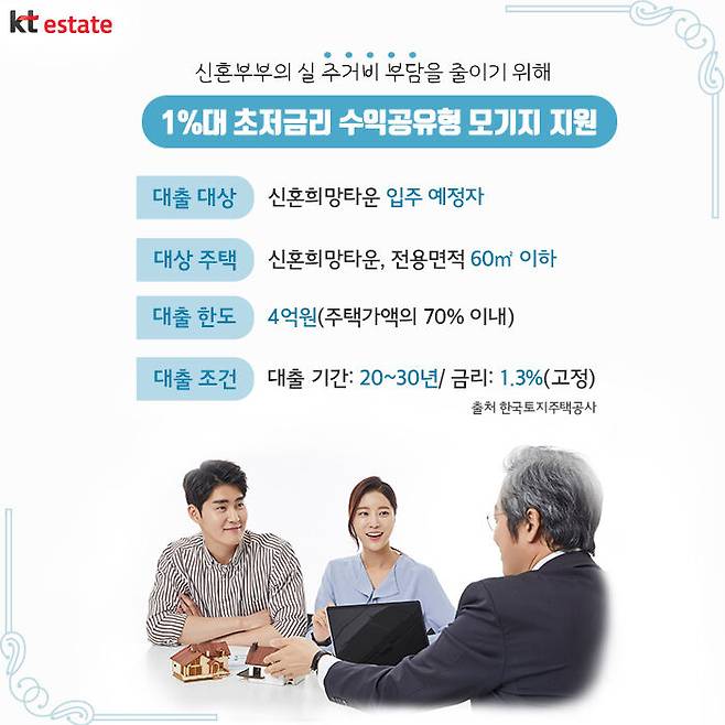 하지만 그럼에도 신혼희망타운은 신혼부부들에게 내 집 마련의 좋은 기회라는 평가를 받습니다. 분양가 상한제를 적용해 초기 분양가격을 시세보다 저렴하게 공급하며, 무엇보다 저금리로 대출을 실행하기 때문입니다.