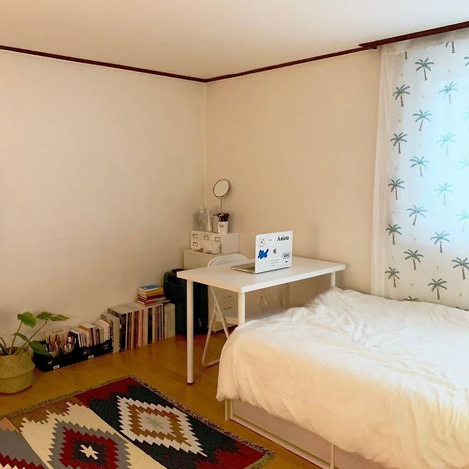"집 꾸미는 걸 좋아하게 된 건 고등학생 때부터였는데요. 처음 생긴 제 방에 아빠가 꽃무늬 벽지를 사 와서 직접 도배를 해주시고 예쁜 책상을 놔주셨어요"