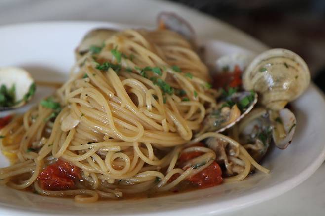 합리적인 가격에 맛은 물론 아기자기한 매장 분위기와 훈훈한 셰프님의 외모로 여성 고객들의 발길이 끊이질 않는 곳이다. 인기 메뉴는 파스타 면보다 조갯살이 많기로 소문난 ‘뉴 봉골레’. 먹물이 첨가된 거뭇한 파스타 면과 함께 개조개와 가무락조개를 사용해 진한 바다의 향을 느낄 수 있다. 쫄깃한 조갯살과 주키니 호박의 부드럽고 아삭한 식감의 조화도 좋다. 저녁에는 셰프가 추천하는 디너 6코스에서 ‘뉴 봉골레’를 즐길 수 있으니 참고할 것. 또한 매장 곳곳에 셰프님이 직접 그린 그림 작품들이 있다고 하니 살펴보는 것도 좋겠다.