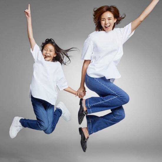 사진 속 야노시호는 추사랑과 의상을 맞춰 입고 다정한 포즈를 취했다. 또 다른 사진에서는 함께 점프를 하고 있다.