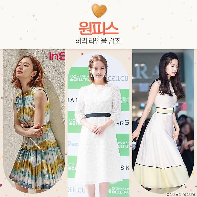 허리선보다 살짝 위에 포인트가 들어간 하이웨스트 스타일의 원피스로 키가 커 보이게 연출해보면 어떨까요? 여자들만의 특권이라고 할 수 있는 여리여리한 원피스로남자들의 보호본능을 자극해보세요.