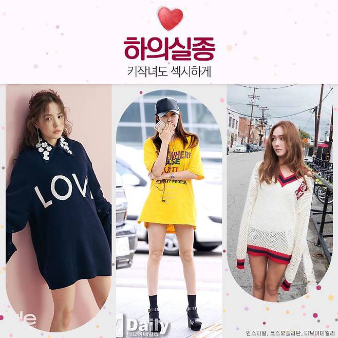 키작녀는 섹시할 수 없다? 아니죠~키작녀도 섹시하게 코디할 수 있는 방법, 하의실종을 꼽을 수 있는데요. 오버사이즈의 니트나 티셔츠를 원피스처럼 입는다면 다리가 길어 보일 수 있답니다. 상체를 강조하고 하체를 되도록 길어 보이게 하는 ‘하의실종’ 코디 참고해보세요.