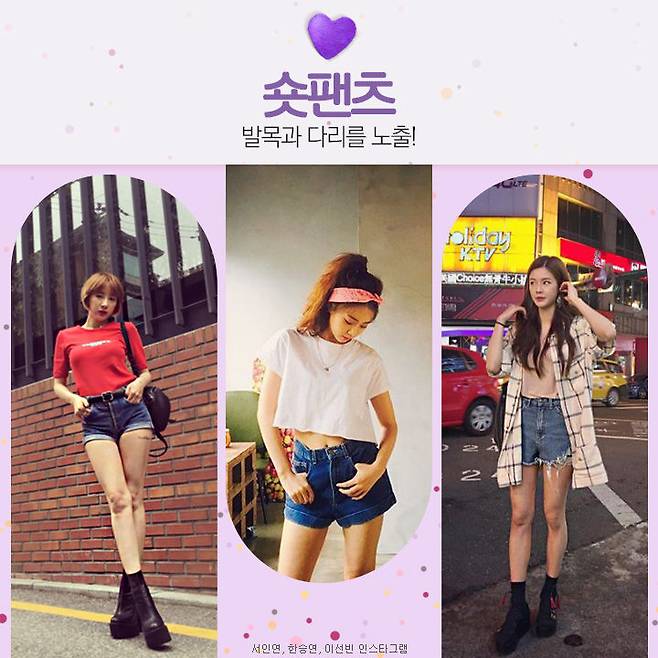 키가 작다고 다리를 꽁꽁 싸맨다면 댓츠 노노!! 하의는 짧게 발목과 다리를 노출해야 키가 커 보인다는 사실!숏 데님 팬츠는 여름 패션의 공식과도 같으니 미리 준비하는 센스! 상의는 숏팬츠 속으로 넣어 입어야 다리가 더 길어 보여요.