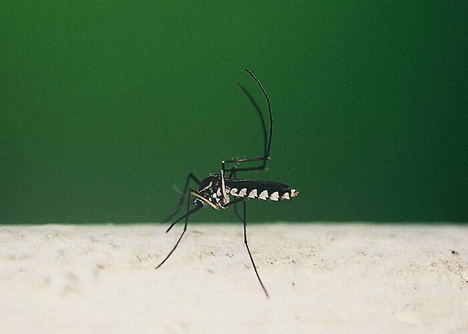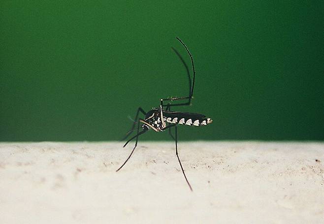 사람의 피를 빨아들이고 바이러스를 전염시키는 모기.
