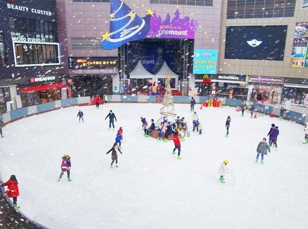 야외 아이스링크는 원마운트 쇼핑몰 중앙 이벤트 광장에 있다.