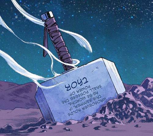 토르가 휘두르는 최강의 무기인 ‘묘묘’ 묠니르는 드워프(난쟁이)인 에이트리가 우르 금속에 우주의 폭풍을 넣어 만들었습니다. 기본적으로 토르 이외엔 누구도 들지 못하죠(캡틴 아메리카가 든 적이 있습니다만).