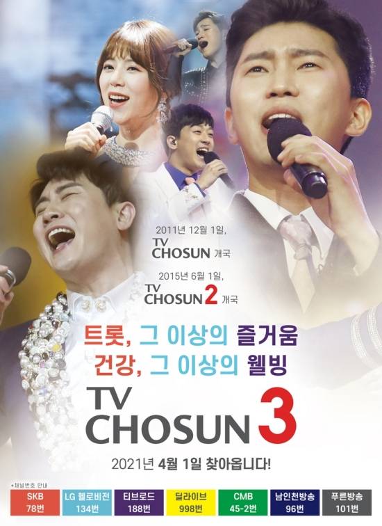 <최근 TV조선이 개국한 트롯, 웰빙 전문 채널 ‘TV조선3’>