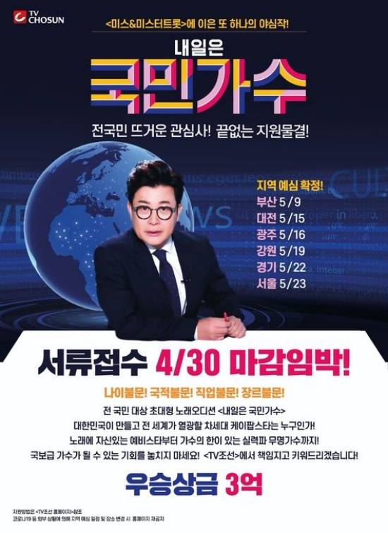 최근 TV조선에서 야심만만하게 준비 중인 K-POP서바이벌 ‘내일은 국민가수’ 역시 예사로 볼 프로젝트는 아니다. TV조선이 시청률과 유튜브 조회 수라는 무기를 둘 다 들고 있는 상태에서 진행하는 프로젝트이기에, 이 프로그램에 특출한 인재들이 모여 돌풍을 일으킬 가능성도 충분히 존재한다. 만약 이 프로그램까지 잘 된다면 TV조선은 “우리가 넘버원 K-POP채널이다”라고 선언을 하지 않을까.
