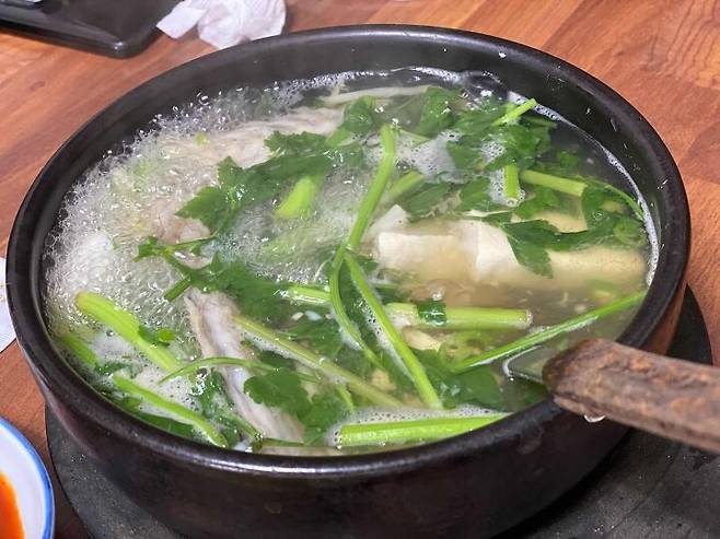 국물도 훌륭하게 잘 고아내서 맛이 좋고, 안에 들어간 고기의 양과 질도 모두 훌륭합니다. 간은 되어있지 않아서 상에 놓인 굵은소금을 조금 넣으면 맛이 살아나는 효과도 있습니다.