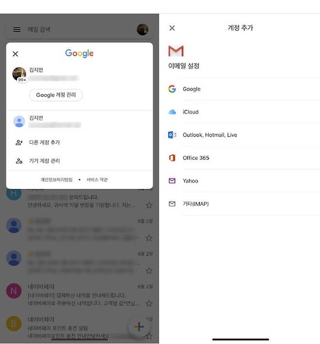 > 현재 Gmail 앱에서 추가할 수 있는 이메일 계정은 다음과 같다