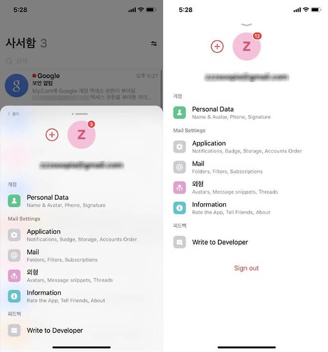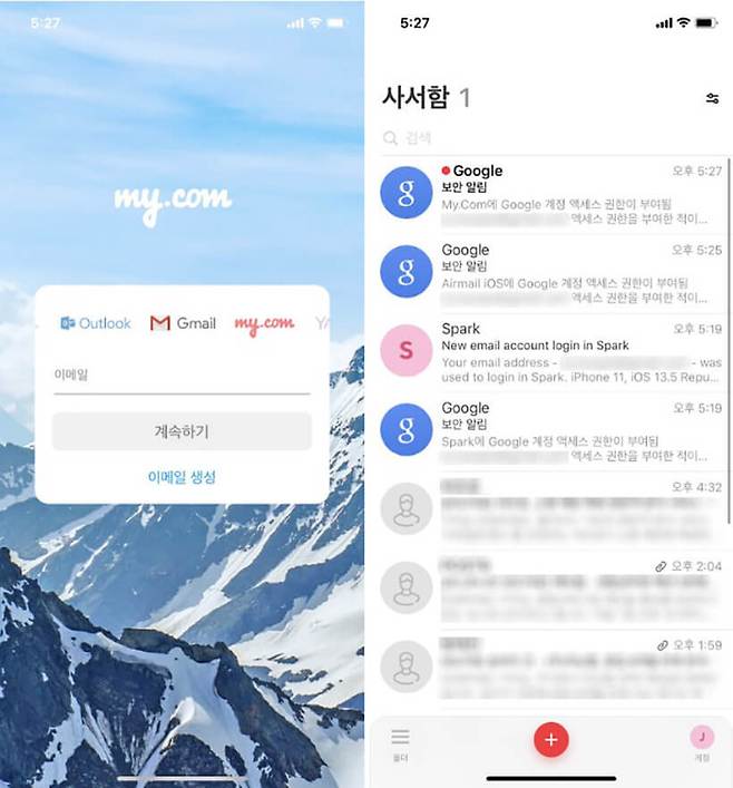 > 메일 앱 기본 설정이 워낙 다양해서 사용자가 원하는 대로 세팅할 수 있다