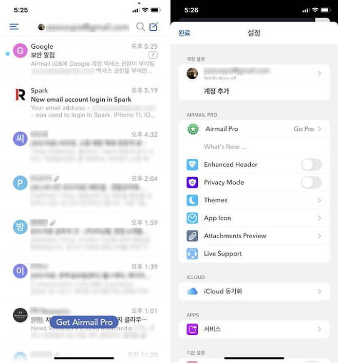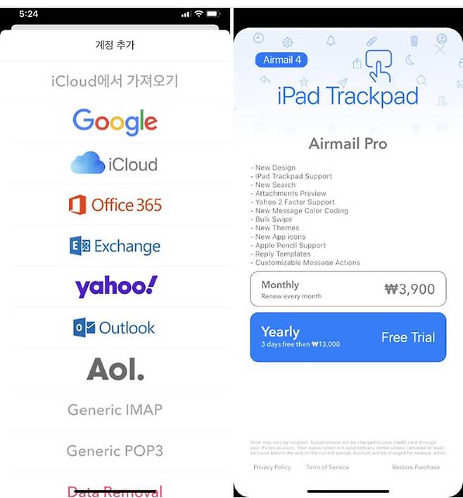> 모든 이메일 계정을 앱 내에서 제한 없이 추가할 수 있다(유료 버전)