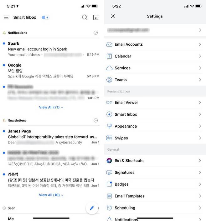 평소 안드로이드 스마트폰과 아이폰을 번갈아가며 사용하는 유저들에게 있어 대표적인 메일 앱은 단연 Gmail이다. 안드로이드 스마트폰에는 기본 앱으로 설치돼있는 경우가 많아 익숙하기도 하겠지만, Gmail을 주계정으로 활용하고 있는 유저들에게도 친숙한 플랫폼이라 접근성이 높은 것도 특징이라 할 수 있다. 안드로이드용 Gmail 앱보다 기능적인 면에서 업데이트가 늦긴 하지만 iOS용 Gmail 역시 꾸준히 업데이트되고 있어 사용에 불편함은 크게 없다.