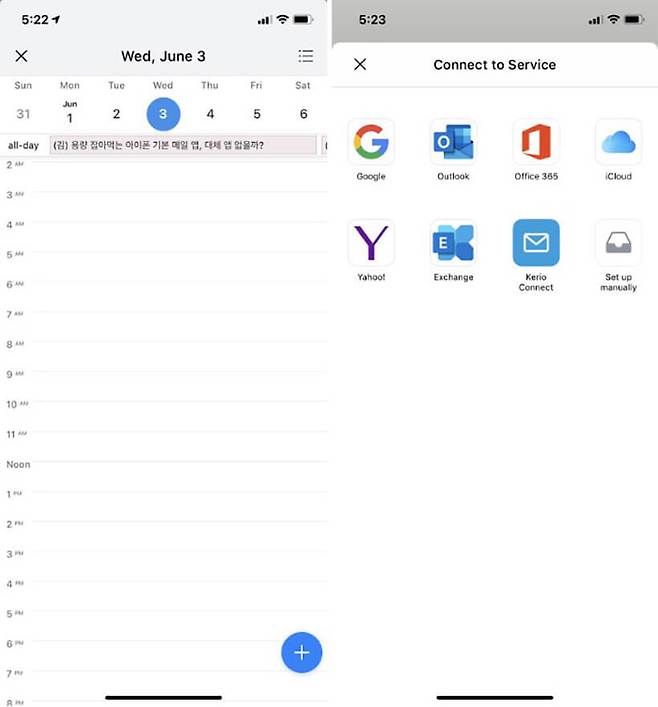 > 이메일 계정에 캘린더가 연동돼있으면, 이처럼 캘린더를 별도로 확인할 수도 있다