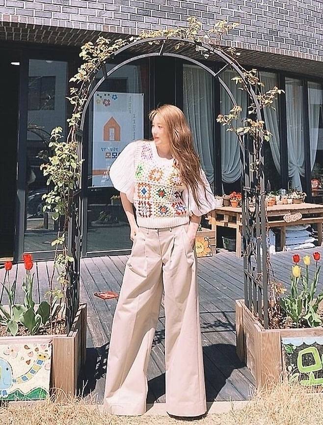 공개된 사진에서 서인영은 신발을 덮은 투턱 롱 와이드 팬츠에 퍼프 원피스와 화려한 니트 조끼를 매치한 탁월한 패션 센스를 과시했다.