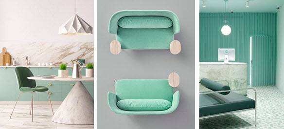 편안하면서도 기분 좋은 분위기를 줄 수 있어 젊은 층이 자주 찾는 카페나 거실에 포인트로 활용하기 적합하다. 네오 민트 색상 자체가 시선을 끄는 컬러여서 화이트·블랙 등 심플한 색으로 된 공간에 포인트로 활용하면 컬러 자체의 매력이 더욱 돋보일 것이다.